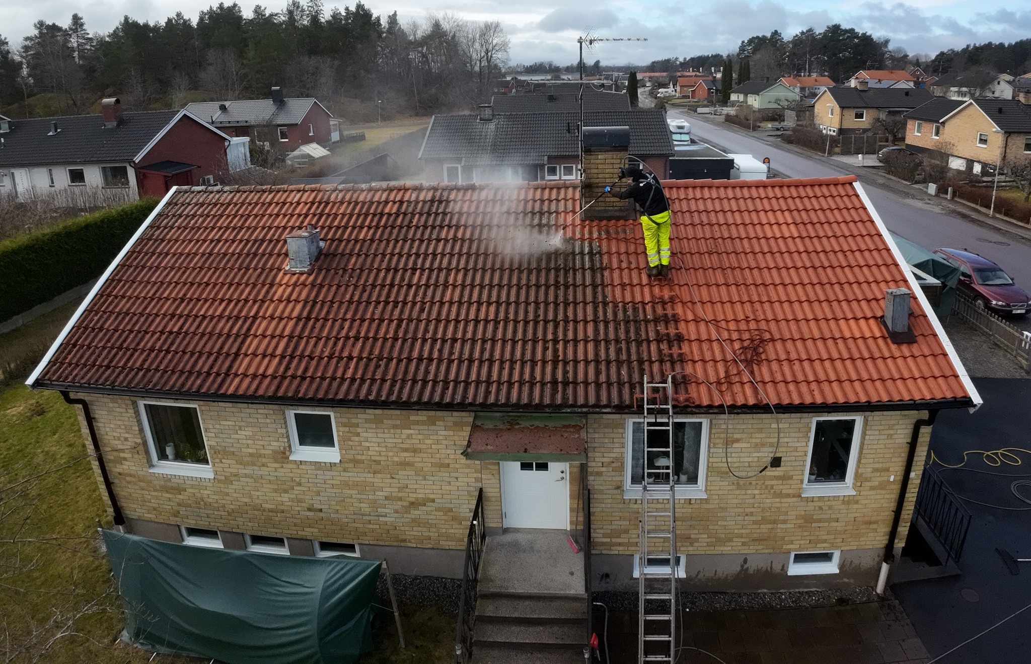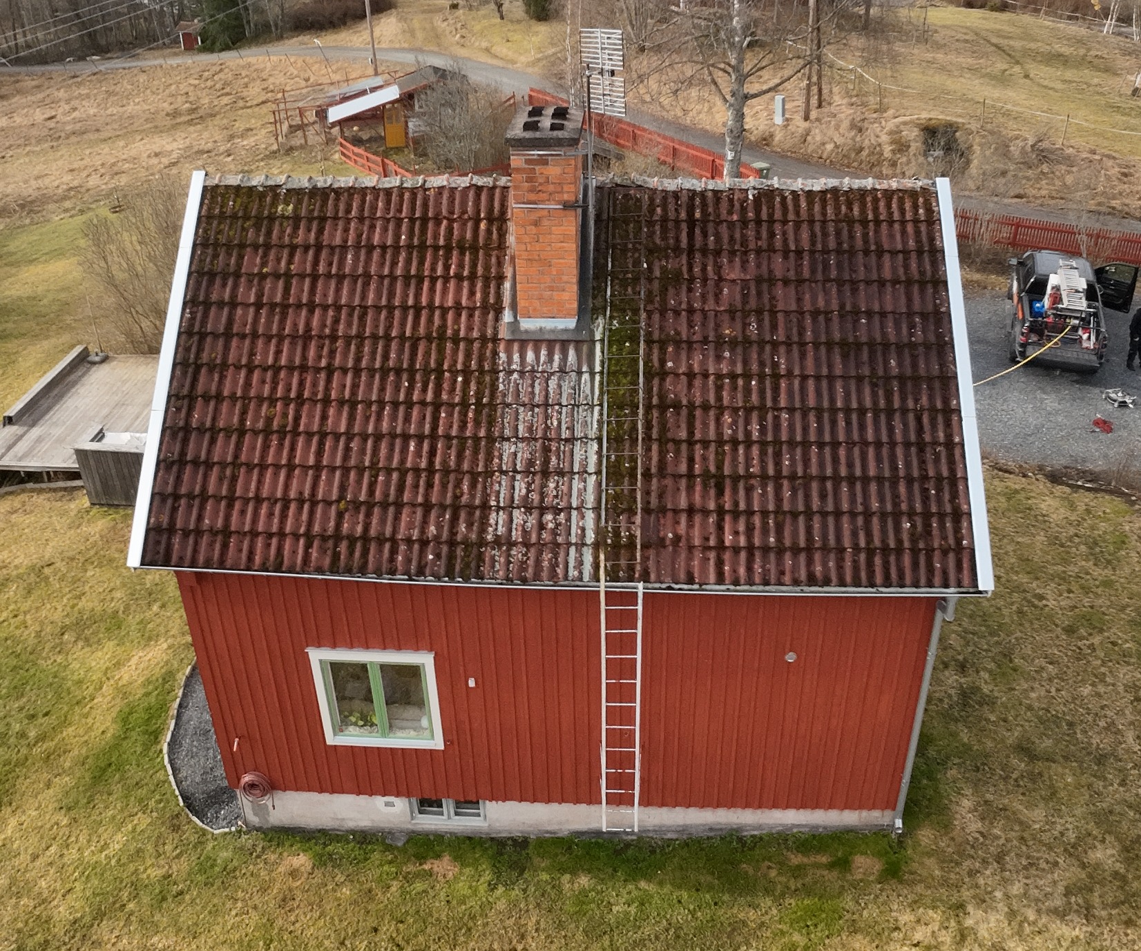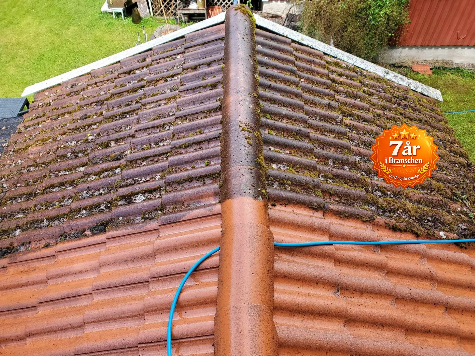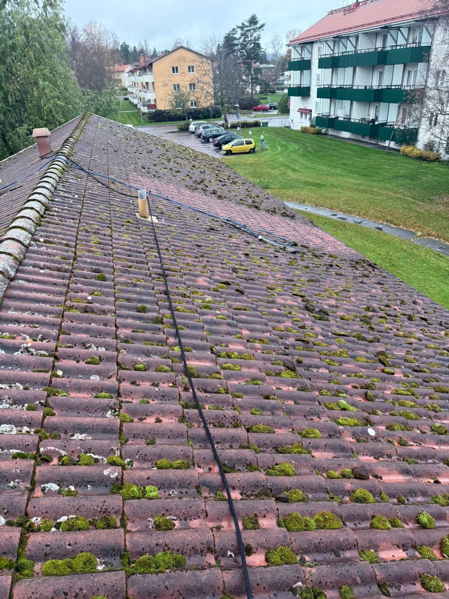 Tak som har mycket mossa behöver rensas från alla mossklumpar för att taket skall kunna bli rent.
