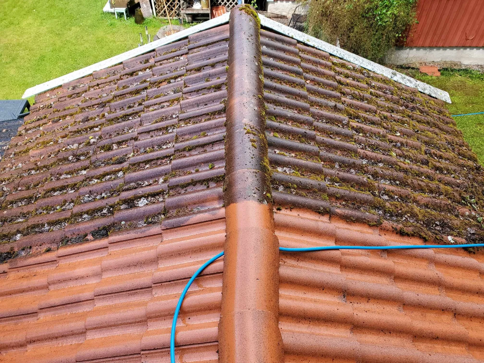 Tak som har mycket mossa behöver rensas från alla mossklumpar för att taket skall kunna bli rent.